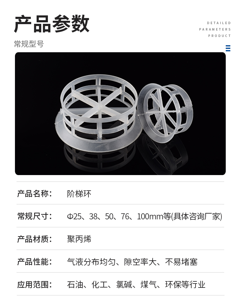 由于階梯環(huán)填料的側(cè)端增加了翻邊,不但可以增加填料環(huán)的機(jī)械強(qiáng)度,而且由于破壞了填料結(jié)構(gòu)的對(duì)稱(chēng)性,因而增加了填料投放時(shí)的定向幾率。又由于翻邊的影響,使得填料在堆積時(shí)填料環(huán)隙之間的接觸由此線性接觸為主變?yōu)橐渣c(diǎn)接觸為主。這樣,不但增加了填料顆粒之間的空隙,減少了氣體穿過(guò)填料層的阻力,而且這些接觸點(diǎn)還可以為液體沿填料表面流動(dòng)的匯聚分散點(diǎn),從而促進(jìn)了液膜的表面更新,有利于填料傳質(zhì)效率的提高。